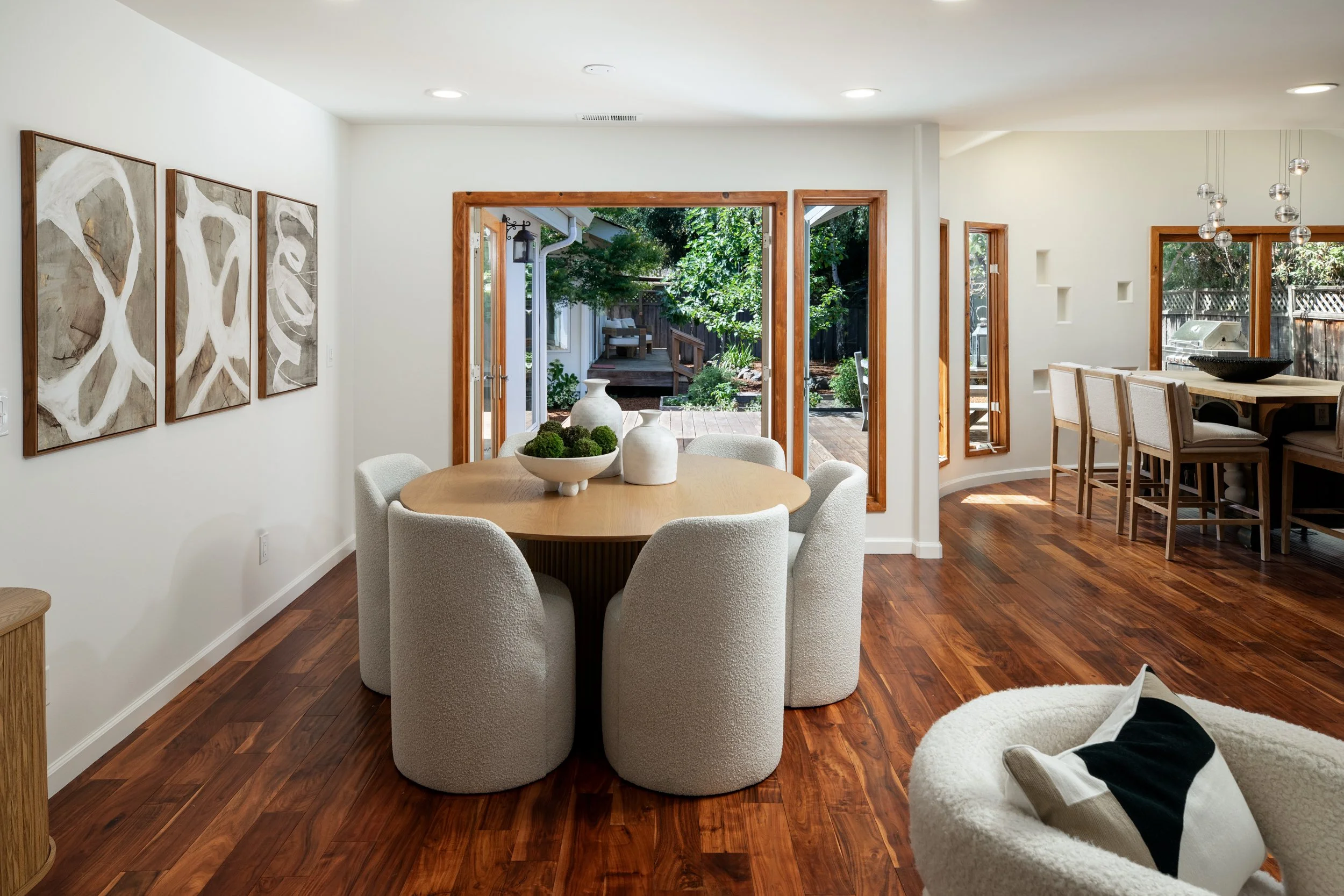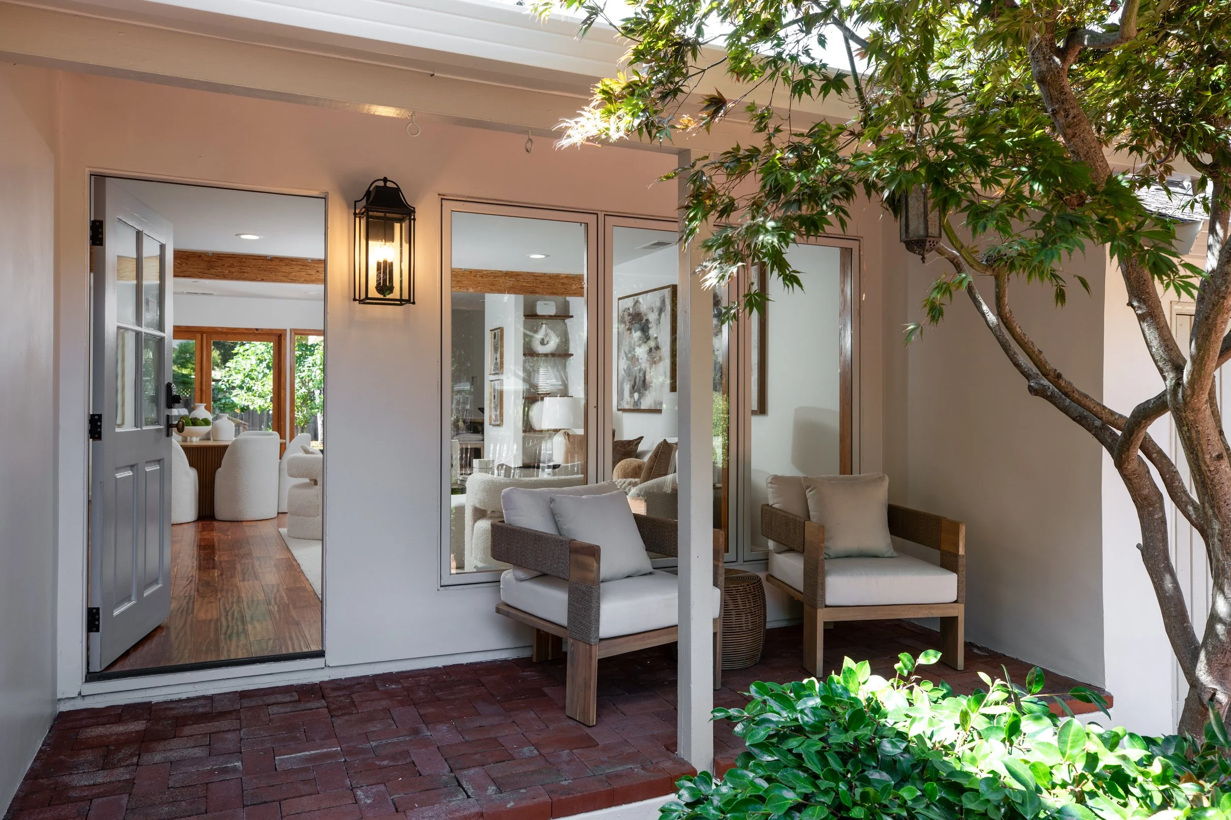 Freshly updated, this charming Fair Oaks home blends timeless character with thoughtful modern upgrades. A welcoming front porch opens to a sun-filled great room with hardwood floors throughout home, wood shelving, and views of both the front and backyard. The spacious dining room features sliding glass doors to the rear yard for seamless indoor-outdoor living. The remodeled kitchen offers abundant cabinetry, stainless steel appliances including a gas stove and refrigerator with exterior ice maker, a stainless apron sink, island seating, and a curved wall and vaulted ceiling with backyard views and exit door. Additional features include a half bath off the entry, a laundry area, and a garage with epoxy floors and loft storage.